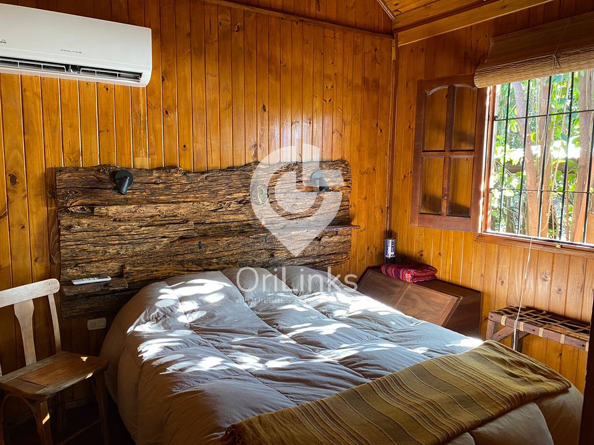 CABAÑA 2: CUENTA CON 1 DORMITORIO CON AIRE ACONDICIONADO FRIOCALOR, WI-FI, COCINA-COMEDOR COMPLETAMENTE EQUIPADA TAMBIEN CON VENTILADOR DE TECHO, BAÑO, DECK, AMPLIO PATIO CON CHULENGO. POSEE SABANAS Y TOALLAS. SIN COCHERA. ESPACIO PARA GUARDAR EL VEHÍCULO EN EL PATIO.