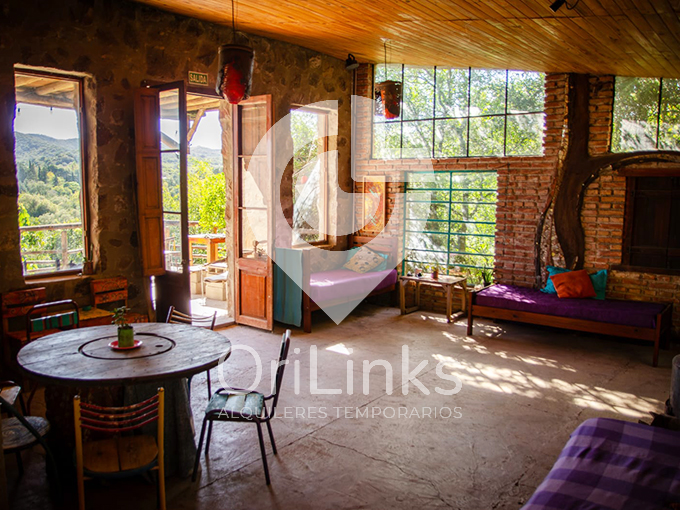 HERMOSA CASA RECICLADA CON GRAN VISTA A LAS SIERRAS CHICAS. Cuenta con 1 dormitorio, living comedor con camas, cocina con barra, equipada, heladera, utensilios, cocina. Un baño. Wi-Fi. Ventilador. Terraza con vista panorámica. Patio de ensueño con desniveles, mesas, sillas, luces. Ideal para pasar unos dias de descanso cerca del río. CONSULTAR PARA EVENTOS DIURNOS.…